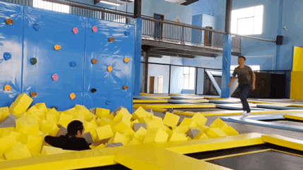 该场馆位于云南曲靖 ,占地面积约为1000㎡, 整个蹦床馆主要由自由蹦床区、蜘蛛塔、海绵池、粘粘墙、疯狂斗牛区、荡桥区、蹦床灌篮区、魔鬼滑梯、室内攀岩等多个项目组合而成,打造出一个多元化、综合型室内游戏场所。让我们一起去看看这个被众多追求刺激、追求新鲜的年轻一族争相打卡的蹦床馆的魅力究竟在何处!